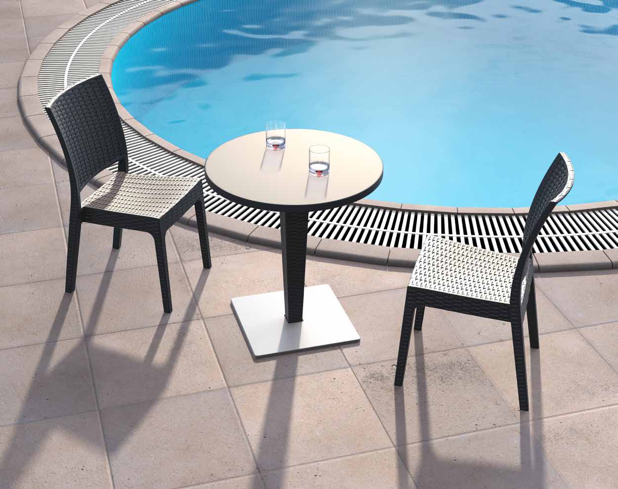 Sillón Florida. Fabricado en resina de polipropileno reforzada con fibra de vidrio. Efecto ratán con superficie mate. Resistente a la intemperie, protección UV contra decoloración. Apto para uso interior y exterior. Apilable, fácil de transportar y limpiar.